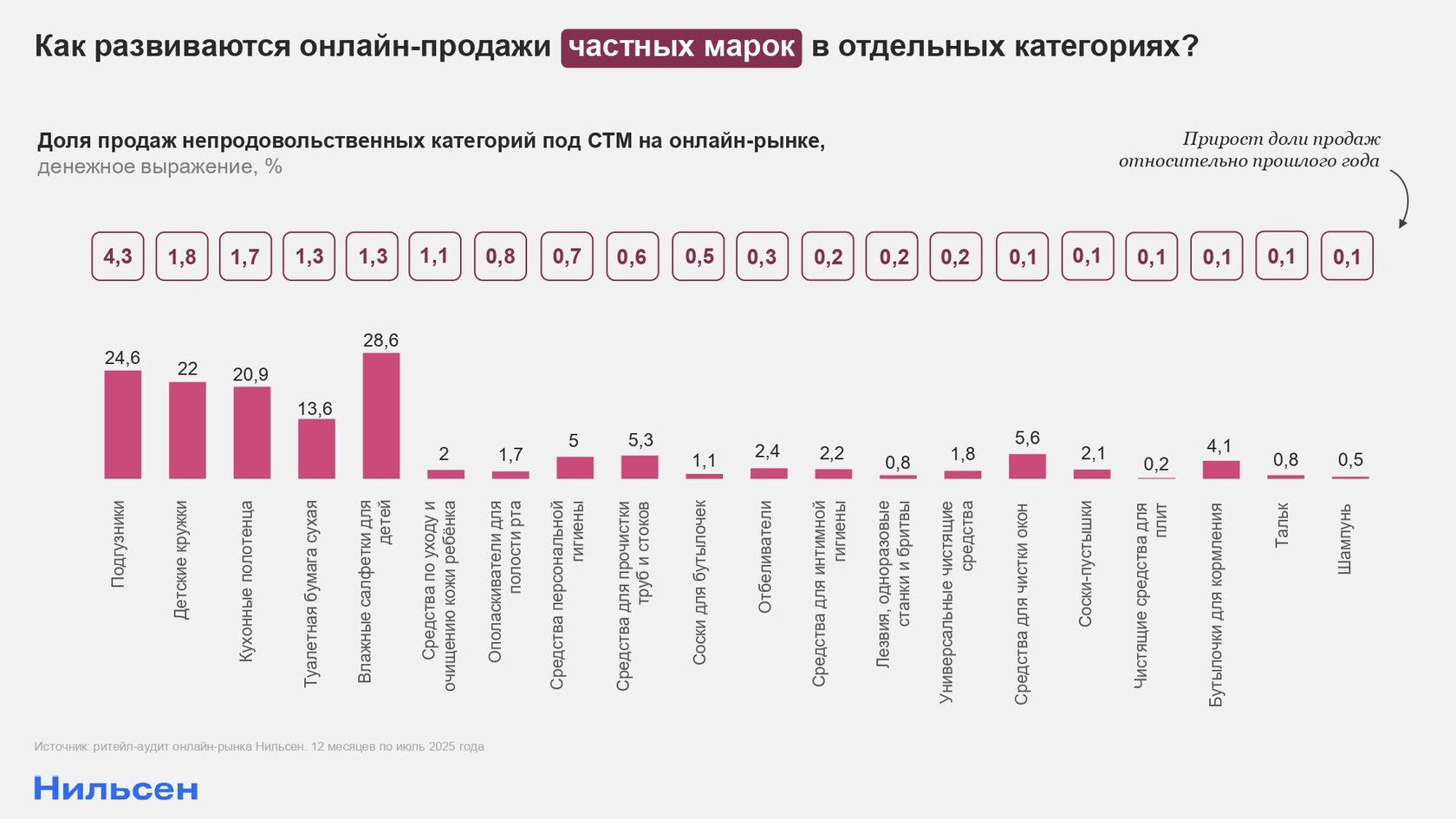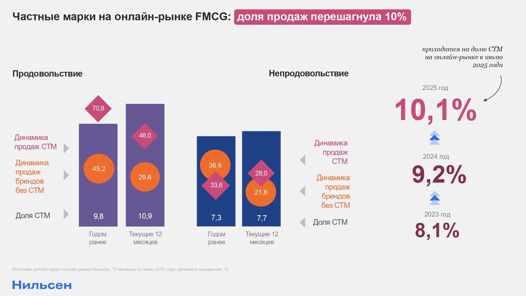 Еще один рекорд онлайн-рынка в 2025 году — СТМ, доля которых впервые превысила 10%. А сам сегмент продолжает привлекать инвестиции в развитие и продвижение.